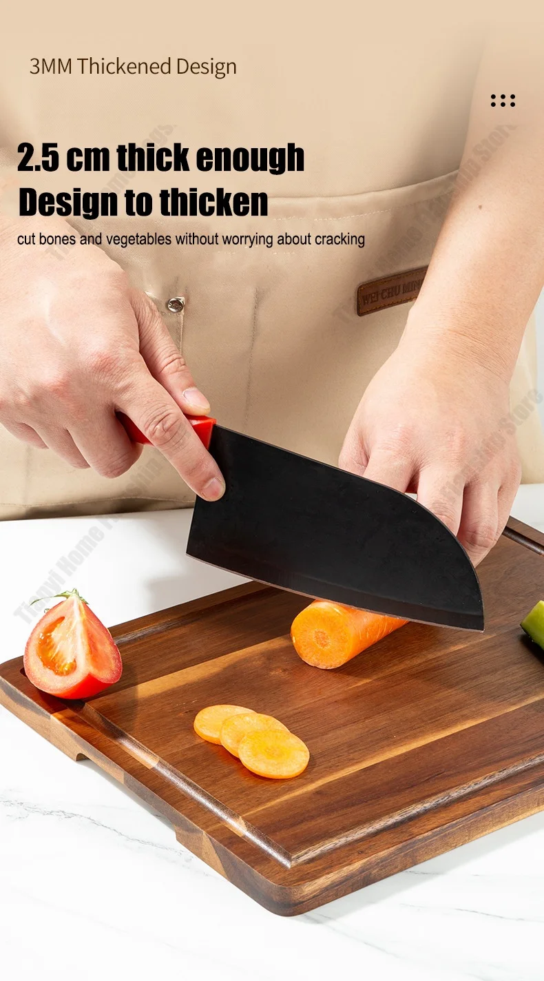 A tábua de cortar espessada oferece amplo espaço para cortar diversos alimentos, desde carne até vegetais e queijo.