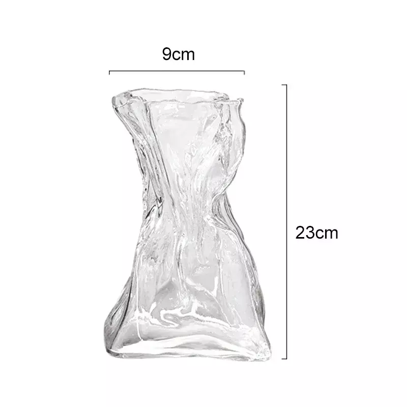 O vaso é feito do material vidro, com seu formato irregular, ele é perfeito para deixar o ambiente da sua casa moderno. O seu tamanho é de 23cm x 9cm.